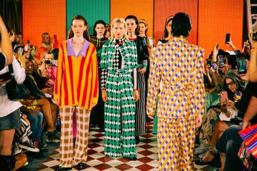 Milagros Muñoz, la creadora de Demiracolo, presentó una pasarela de rombos, sus coloridos y llamativos trajes y vestidos con personalidad, alegría y dinamismo.