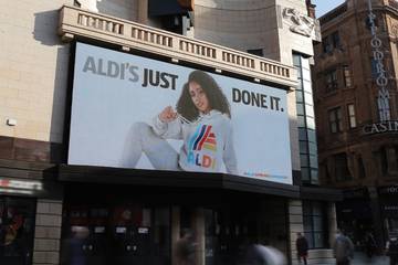 Con motivo de la presentación de esta nueva colección “Aldimania”, desde la cadena de supermercados han diseñado una estrategia de visibilización a través de la cual han llevado a cabo el desarrollo de un vídeo promocional, en el que pueden verse las distintas piezas de la propuesta, así como anunciado su lanzamiento mediante una gran lona publicitaria en la plaza peatonal londinense de Leicester Square. Valla en la que puede verse una imagen de una modelo luciendo piezas de la colección junto al lema “Aldi’s Just Done It” (Aldi acaba de hacerlo). Letras en forma, y fondo, lanzadas a modo de clara respuesta al emblemático eslogan de Nike “Just Do It” (Solo hazlo).