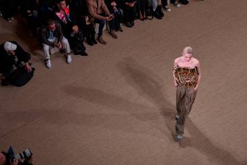Partiendo de este modo de las tierras sobre las que se asienta la capital de Nueva Aquitania como principal motivo de inspiración, Rousteing parece decidido a invitarnos desde esta propuesta a una suerte de picnic entre vides y viñedos. Una cita para la que nos descubre un armario en el que adquieren un especial protagonismo los pantalones de pinzas, las gabardinas, las faldas y los vestidos plisados, así como los corpiños. Categoría esta que termina por adquirir una identidad propia dentro de la colección, presentándose en una tan amplia como variada serie de formas y estampados, elementos en torno a los que al tiempo terminan por verse reunidas todas las sumas de influencias e intenciones que parecen sostener la propuesta, y que veremos en respuesta reunidas en torno a unos corsés y chaquetas/corsés de líneas años 60, con hombreras amplias y espaldas angulosas; en efecto plisado al más puro estilo “Balmain”; confeccionados en un grueso cuero negro; con solapas puntiagudas y metálicas; o recubiertos de racimos de uvas.
