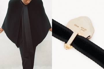 Siguiendo desgranando en detalle las características principales de la cápsula, en cuanto a las hechuras de las piezas, estas se nos descubren en unas líneas libres y fluidas, para unas prendas de marcada estética minimalista y atemporal, entre las que encontraremos desde elegantes vestidos de noche ausentes de toda muestra de ornamento, hasta prendas de sastrería y toda clase distinta de blusas, camisas y tops. Pudiendo a bien destacar de entre todas ellas la blusa con lazada “lavallière” característica de la oferta de Chloé, y revisitada ahora en satén bajo el paraguas de esta colaboración, o distintas prendas inspiradas en algunas de las piezas más significativas que Angelina Jolie atesora en su fondo de armario, y entre las que encontramos una nueva versión de un vestido blanco de algodón bordado que usó siendo niña, y que a día de hoy emplea como top, o una capa de terciopelo negro.