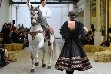 La Maison de alta costura sorprendió con caballos recorriendo la pasarela entremezclados con modelos portando largos y vaporosos vestidos, así como impactantes tocados. De acuerdo con la Maison, “La Doña” encarna la pasión, el erotismo y cierto magnetismo que el diseñador quiso reflejar.