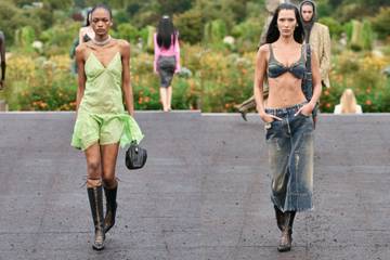 Las hermanas Hadid fueron las estrellas del desfile, presentado en el Jardín de Plantas parisino a pesar de la lluvia. Bella vistió un jean con top sujetador y Gigi un conjunto chaqueta y falda.