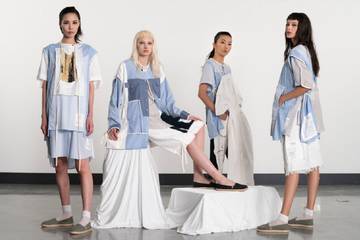 La diseñadora, graduada de la UBA, está radicada desde 2019 en la ciudad de Arnhem, Países Bajos. Para hacer la colección que la convirtió en ganadora del concurso, reutilizó prendas donadas por sus vecinos y las convirtió en una propuesta celeste y blanca, íntegramente realizada con desperdicio cero.