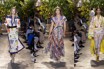 La casa Etro transporta a la costa amalfitana. El colorido resurgimiento del patrón de tipo Paisley tan querido por la marca, la ligereza de las formas o los caftanes son como una promesa de hermosos paseos por las playas de la Riviera.