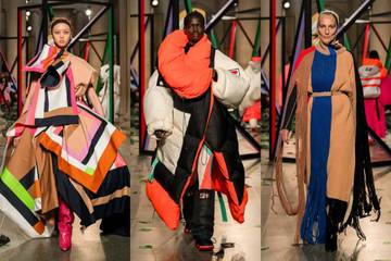 Esta fue una colección llena de color y detalles exagerados. Con vestidos ondulantes que parecían edredones, un anorak transformado en un vestido de gala con dobladillo de burbujas, y vestidos suaves y sedosos elegantemente sujetos con alfileres de metal que parecían joyas, desfilaban en una pasarela de bloques de colores y adornos con estampados.