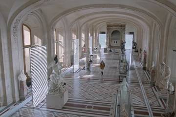 En lo que la firma no ha duda en calificar sino como de una perfecta combinación entre pasado y futuro, el desfile tenía lugar en la conocida como Galería Michelangelo del Museo francés. Lugar en el que el complejo reúne una buena parte de su colección de esculturas italianas, entre ellas unas tallas inacabadas de “los esclavos” de Miguel Ángel —responsables de dar su nuevo nombre a la antigua galería Mollien—, y que Nicolas Ghesquière, director creativo de la línea femenina de la firma francesa, escogido como el mejor de los espacios para poder dar a conocer su última colección. Una propuesta de inspiración grecorromana que se presentó al ritmo de la música del dúo francés Daft Punk, y de la que destacó notablemente, en el ámbito creativo, la presencia sobre la pasarela de una selección de artículos extraídos de la colección cápsula desarrollada por Louis Vuitton en colaboración con la icónica firma italiana Fornasetti.