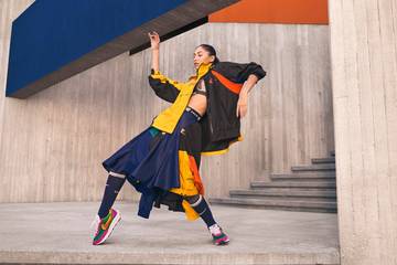 La colección se compone de un total de 11 piezas en las que se combinan el pasado y el presente de las innovaciones deportivas de Nike y de sus prendas de running, a través de un atrevido contraste y superposición de patrones, logos y colores. Diseños creados a partir del talento de Abe y de su extraordinaria capacidad para deconstruir, reconstruir y fusionar diferentes elementos e ideas. Herramientas creativas, con las que la diseñadora es capaz de dotar a esta colaboración de un carácter ciertamente inconfundible, dando como resultado piezas completamente nuevas e inspiradoras.