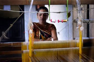 Tejedores indios de saris luchan por mantener viva la tradición