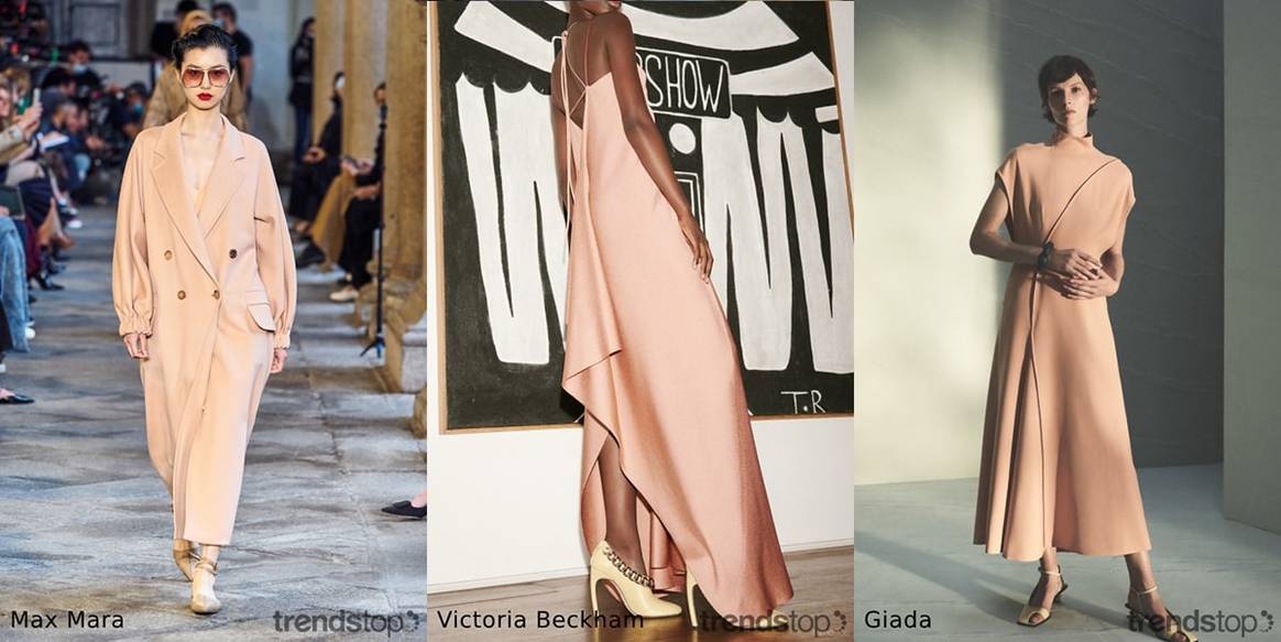 Para la temporada SS21, Los diseñadores continúan apostando por la tendencia melocotón de temporadas anteriores pero en versión más delicada y más ecológica. Los acabados blanquecinos, los tonos tornasolados y las matices mandarina pálido se fusionan con rosas y amarillos clásicos, en una clara apuesta por la versatilidad de los tonos neutros tradicionales.
