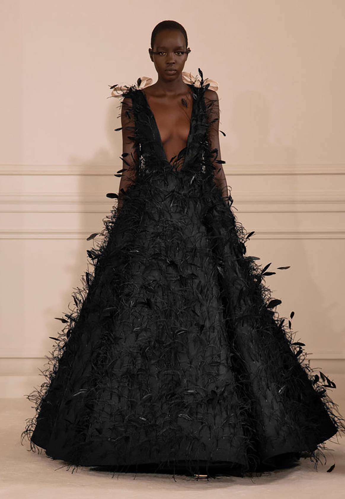 Partiendo de esta poética a favor de la inclusión, Piccioli ha compuesto una amplísima y variadísima colección, en la que no faltan las muestras de tallas XXL ni las prendas de corte genderless. Destacándose de entre todas ellas desde la amplia variedad de vestidos de noche, a conjuntos de pantalón y chaqueta o unos elegantísimos abrigos, piezas todas ellas a cuyas formas, perfectamente construidas, el diseñador no dudó de dotar de una marcada contemporaneidad, a base de transparencias, vertiginosos escotes, bordados, fruncidos, incrustaciones de plumas, aberturas o detalles en brillantes piezas de strass.