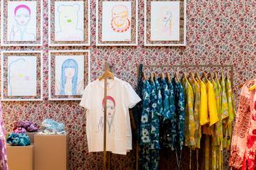 El corner pop up, al que a Gabriella Cortese, diseñadora y fundadora de la marca, le gusta llamar “la famille Antik Batik”, está diseñado siguiendo la filosofía y los códigos estéticos de la maison con un tejido floral que recubre tanto la pared como el sillón formado por grandes cojines, cuadros de su último libro “Mongolia” fotografiado por Thierry Le Gouès y la colaboración con varios artistas y artesanos.