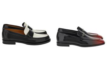 Los mocasines están disponibles en una gama de colores, con un estilo completamente negro que contrasta con un interior rojo vibrante. Los demás estilos vienen en blanco mascarpone monocromo, blanco y negro, rojo y plata con suela marrón cuoio que aligeran cualquier look otoñal con un acento inesperado.