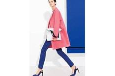 La modelo Stella Tennant, presenta esta colección exclusiva compuesta por un vestido saco, un vestido recto, una blusa y una camisa de seda, un pantalón y un abrigo en colores puros y unos zapatos de tacón de dos colores.